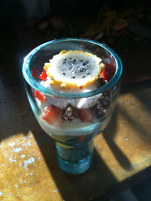 An easy seasonal twist on a classic healthy breakfast, lunch, or dinner snack. It's as easy as a cup of organic yogurt, fresh fruit of choice, and granola of choice.
